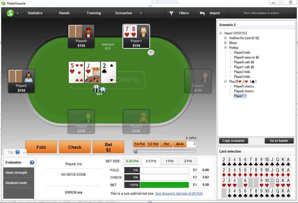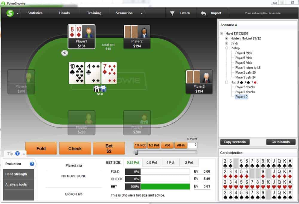 Cependant, l’application évalue que tous vos adversaires vont jouer une stratégie très équilibrée et solide post-flop, ce qui n’est pas le cas dans la plupart des jeux de la vie réelle.