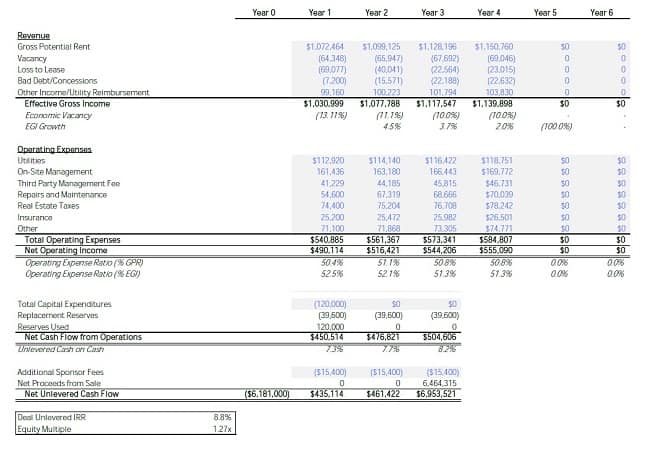 Au minimum, commencez par une estimation du revenu locatif au cours des trois à cinq prochaines années. Les estimations du promoteur pour les pertes de postes vacants et de location sont-elles semblables à celles de votre étude de marché ?