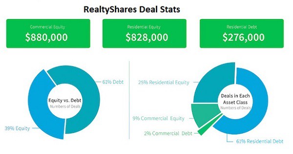 La majorité des transactions cotées sur les plateformes de foule sont des propriétés résidentielles, réparties entre actions et dettes. Ceci est assez commun à travers la plupart des portails de crowdfunding immobilier parce que les promoteurs résidentiels ont eu le plus de difficulté à obtenir des prêts bancaires.
