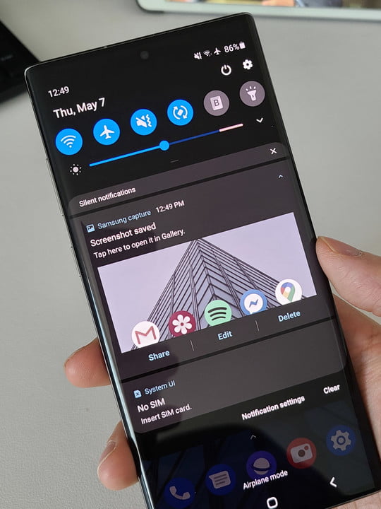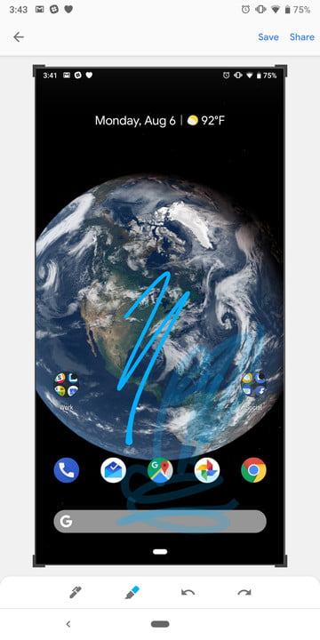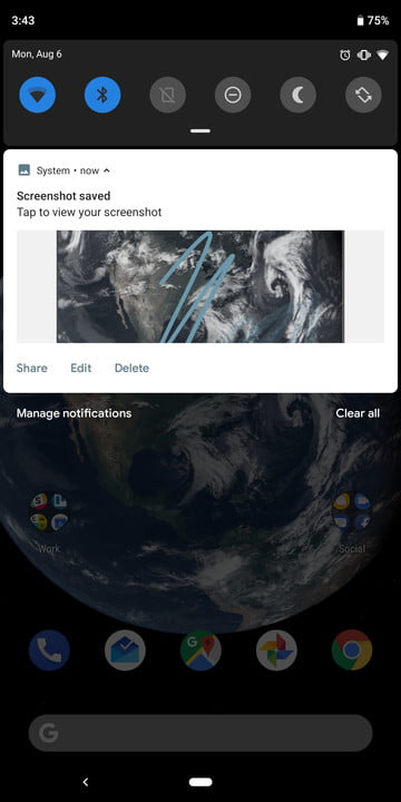 Si vous utilisez Android 10, vous pouvez également appuyer longuement sur le bouton d’alimentation pour obtenir une option de capture d’écran qui s’affiche à l’écran. Si vous choisissez de modifier la capture d’écran à partir de la barre de notification, vous verrez également que vous pouvez la vérifier, ce qui est idéal si vous voulez mettre en évidence quelque chose de spécifique.