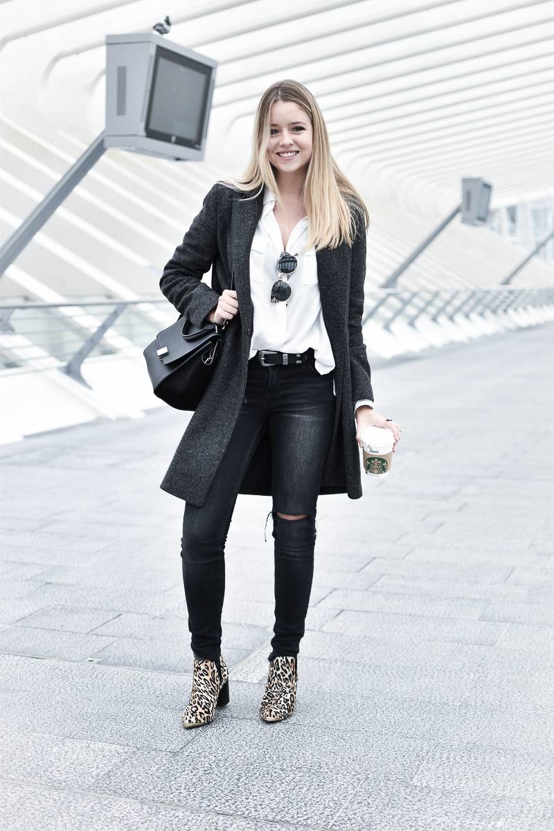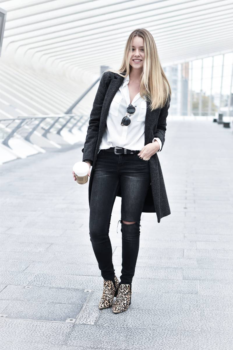 Donc, dans cette tenue, je porte certains de ces basiques célèbres. La pièce maîtresse de cette tenue, un classique : la blouse. Cependant, tous les chemisiers ne sont pas agréables à porter. Dans cette tenue, je porte une chemise fluide, pas du tout « rigide », dans laquelle je suis très à l’aise. Ce genre de modèle est idéal pour les rendez-vous stressants, contrairement à un chemisier serrant qui aura tendance à vous embarrasser et vous faire plus de sueur (et pas de stress de la petite balle qui surpasse avec ce genre de modèle si vous voyez ce que je veux dire 😉). Je porte ensuite des jeans, pour ma part déchiré (mais je peux comprendre que pour certaines personnes une larme, même minime, brise immédiatement l’habillé et côté « sérieux » d’une tenue, donc si vous hésitez, optez de préférence pour un modèle simple). Les jeans s’intègrent clairement dans les codes de la femme active, alors n’hésitez pas à le porter pour travailler si vous vous sentez plus à l’aise que dans les clips de pantalon ! En outre, associé aux pièces nécessaires, il peut même faire « chic ». Pour finir la tenue, je porte un manteau en laine , une pièce indispensable dans le vestiaire de la femme d’affaires. Ce type de modèle apporte immédiatement une fille tactile très travaillante à une tenue, et surtout beaucoup de classe. Il s’associe idéalement avec des robes, des jupes, des pantalons, des jeans, en bref, un basique pour les femmes actives. Personnellement depuis que j’ai commencé à porter ce genre de mannequins, c’est simple, je le jure !