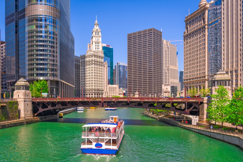 Passeggiando lungo il fiume Chicago si è sicuri di vedere il Chicago Water Taxi giallo che attraversa il passato.