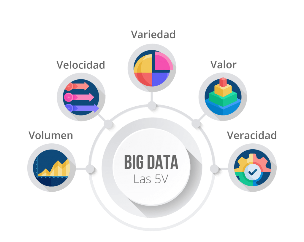 Big Data se caractérise par le respect des 5 « V », qui ne sont que 5 caractéristiques représentatives de cette technologie.