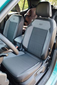 Le nouveau T-Cross est compact, mais pas petit. Un peu drôle que le siège arrière est coulissant, il est possiblese déplacer de 14 centimètres vers l’avant ou l’arrière, obtenir un compartiment à bagages plus grand ou, en conséquence, une place pour l’arrière des jambes assises. Seulement devant un siège entièrement rétracté, un trou est formé entre le plancher du coffre et le dossier du siège — l’endroit idéal pour perdre des choses. De plus, il donne 70 litres de coffre à bagages — il passe de 385 à 455 litres, et si le dossier du siège arrière est entièrement roulé — jusqu’à 1281 litres. Quelqu’un, même si je ne comprends pas non plus l’utilisation réelle de litres dans la vie ? Il serait préférable d’utiliser une unité de mesure des boîtes en carton au lieu de litres. Le coffre n’est pas énorme, mais une grande valise s’y adaptera librement. Les poches latérales sont assez grandes pour une bouteille d’eau de 1,5 L et dans quelques poches supplémentaires les enfants pourront emballer un tas de papier bonbon. Tout est suffisant.