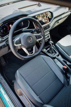 T-Cross n’est pas disponible avec un moteur à essence de 1,5 150 ch, ce qui est très regrettable car 115 ch semblait un peu trop peu. La collaboration presque parfaite entre le moteur et la boîte de vitesses sauve également la situation. Le petit manque de puissance est également compensé par la suspension, la voiture est confortable et capte très bien les nids de poule et les irrégularités de la route. Il y a même un sentiment que VW a essayé ce petit croisement intensivement à Riga avant la production, parce que les routes de la ville sont assez tristes pour nous, mais la voiture ici se sent commecanard dans l’eau. Le confort signifie généralement que dans les virages, la voiture va balancer beaucoup. Pas dans ce cas. La voiture est assez ferme et réactive aux déplacements dynamiques aussi, elle se sent très bien dans un viaduc rapide. Il faut dire à propos des disques de 17 pouces, dont cette voiture a l’équilibre parfait entre l’apparence et le confort. À un certain moment, il semble que R16 serait plus approprié, mais cela rendrait certainement la voiture plus lucrative. L’équipement de direction est réactif et précis et le rayon de braquage est également très bon pour la ville. À des vitesses plus élevées, bien que le volant semble trop « lâche », mais pour des vitesses plus élevées, cette voiture ne convient pas, puisque le bruit du vent au-dessus de 100 km/h reste très prononcé. Cependant, pour les concurrents, le bruit du vent et de la route est encore plus prononcé, c’est simplement une nuance de l’utilisation de telles petites voitures.