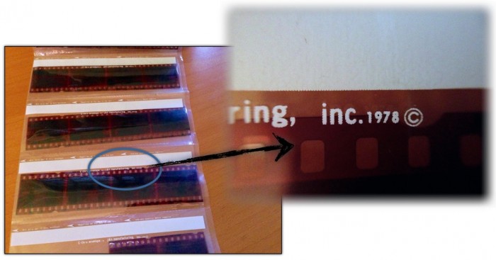 J’ai trouvé cette date de copyright imprimée sur le support négatif en plastique 35mm que nous avons obtenu du processeur de film. [/légende]