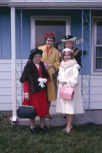 Je commence à archiver toutes les photos de ma mère. Alors que nous les sortons des albums (qui, d’ailleurs, je déteste ces vieux albums « magnétiques » — les photos collent aux pages), elle me dit qui est dans les photos, etc.