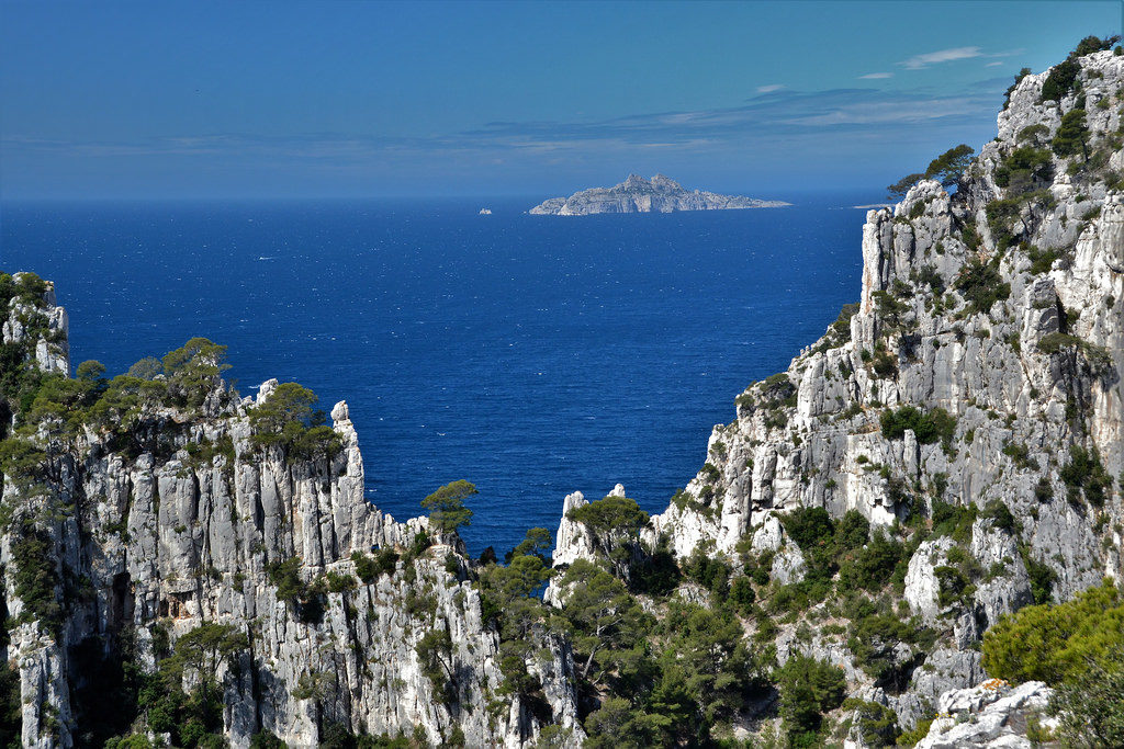 Les Calanques sont des falaises de calcaire blanc et des ruisseaux qui atteignent des hauteurs gargantues et descendent brusquement vers la mer.