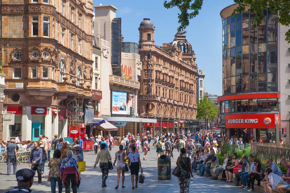 Het plein wordt omgeven door een aantal bioscopen met enkele van de grootste schermen van de stad, evenals een verscheidenheid aan restaurants. De tuin in het midden van het plein is perfect om af te koelen in de zomer of om uw voeten te rusten na een lange dag van het verkennen van Londen.