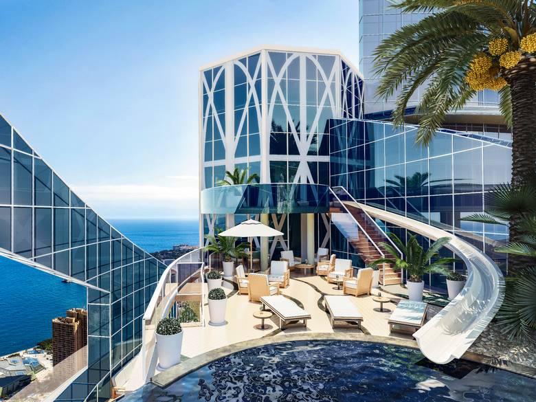 Le Penthouse de la Tour Odéon à Monaco est également l’une des propriétés les plus chères actuellement disponibles. Situé à 170 mètres d’altitude, l’appartement de 3 300 m2 occupe les 45e et 49e étages du bâtiment d’élite. Cette propriété avec ses vues panoramiques vertigineuses, une piscine avec toboggan, une salle de sport et un sauna est estimée à un minimum de 300 millions d’euros. Le penthouse est fièrement classé comme l’appartement le plus cher au monde.