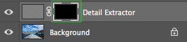 Selezionare il livello Estrattore dettaglio. Tenete premuto il tasto ALT (Win) /Opzione (Mac) e fate clic sull’icona Crea nuova maschera nel pannello Livelli. Tenendo premuto il tasto ALT/opzione, la maschera inizierà come nera, dove non viene rivelato nulla del livello, come puoi vedere nello screenshot qui sotto.