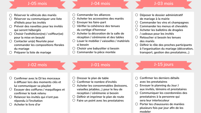 Enfin, il est important de bien préparer sa liste d’invités et s’assurer que toutes les personnes que vous souhaitez inviter ont été correctement informées des différents éléments du mariage (date, lieu etc.).