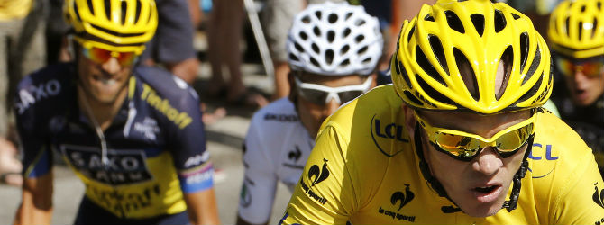 Fair-play le Britannique. Conscient d’avoir assommé le Tour de France par ses multiples coups de force, Christopher Froome a accepté de donner une chance à ses concurrents. Il participera aux prochaines étapes en ne pédalant qu’avec une seule jambe et les yeux bandés. Il utilisera la jambe gauche, sa jambe droite étant sous le coup d’une enquête pour dopage depuis 2002.