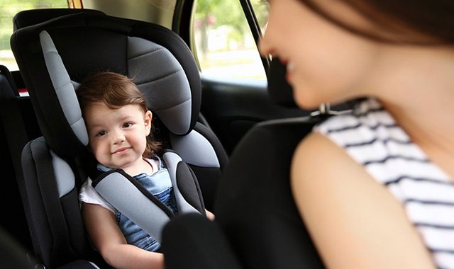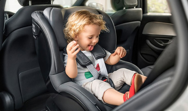 Il est recommandé de conduire les enfants avec le dos vers la direction du mouvement — ceci est obligatoire pour les bébés jusqu’à l’âge de 15 mois.