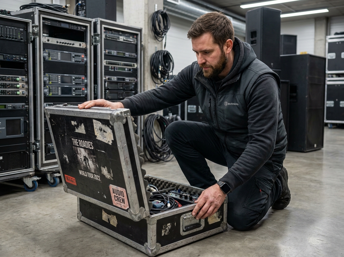 Un flight case bien construit est conçu pour durer des années de tournée intensive. Le contreplaqué multiplis résiste à des centaines de cycles de chargement-déchargement. Les profilés aluminium ne fatiguent pas. Les fermetures papillon sont des pièces standardisées, remplaçables individuellement.