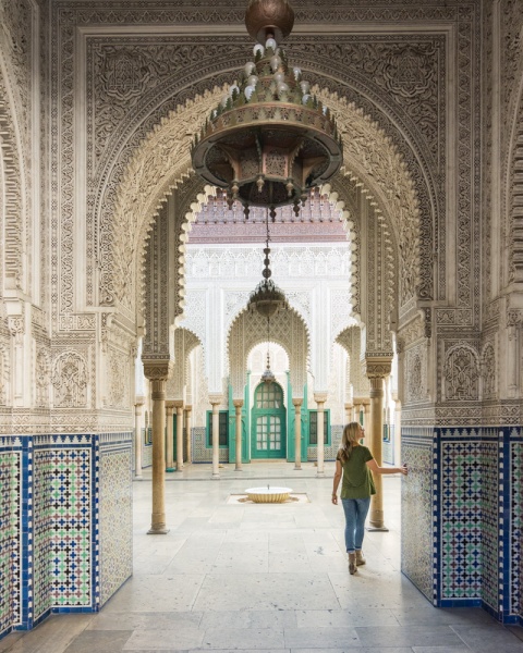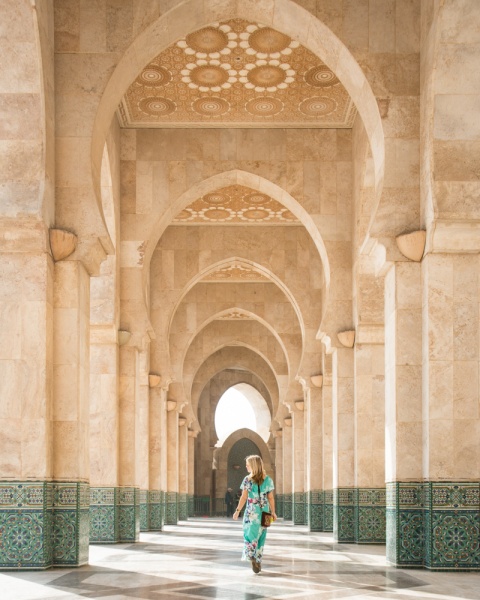 La cour est ouverte à tous à visiter et c’est un endroit pour passer un après-midi. Les carreaux de marbre turquoise disposés dans des motifs islamiques classiques brillent de façon vibrante à la lumière du soleil. La mosquée Hassan II est certainement l’un des endroits les plus photogéniques du Maroc ! C’est certainement la chose numéro un à faire à Casablanca.
